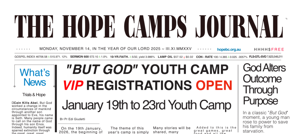 Pr Edi is directing the camp and exited to introduce Jeramie Hipworth, who is set to preach that wonderful news of the Gospel and share some great messages of “But God” moments in the Bible, and in life, to encourage us all.